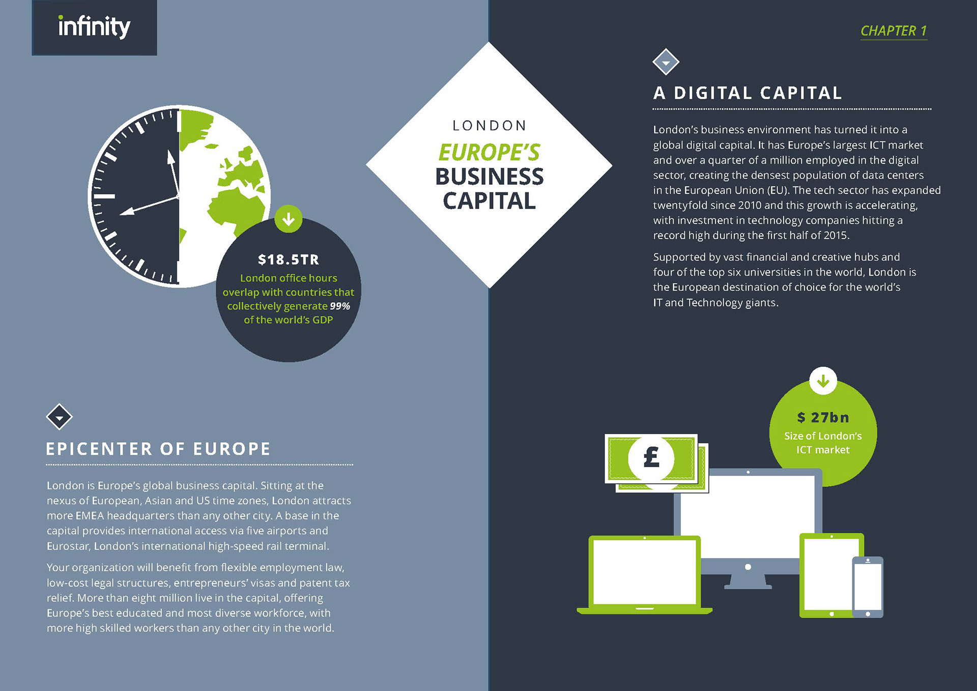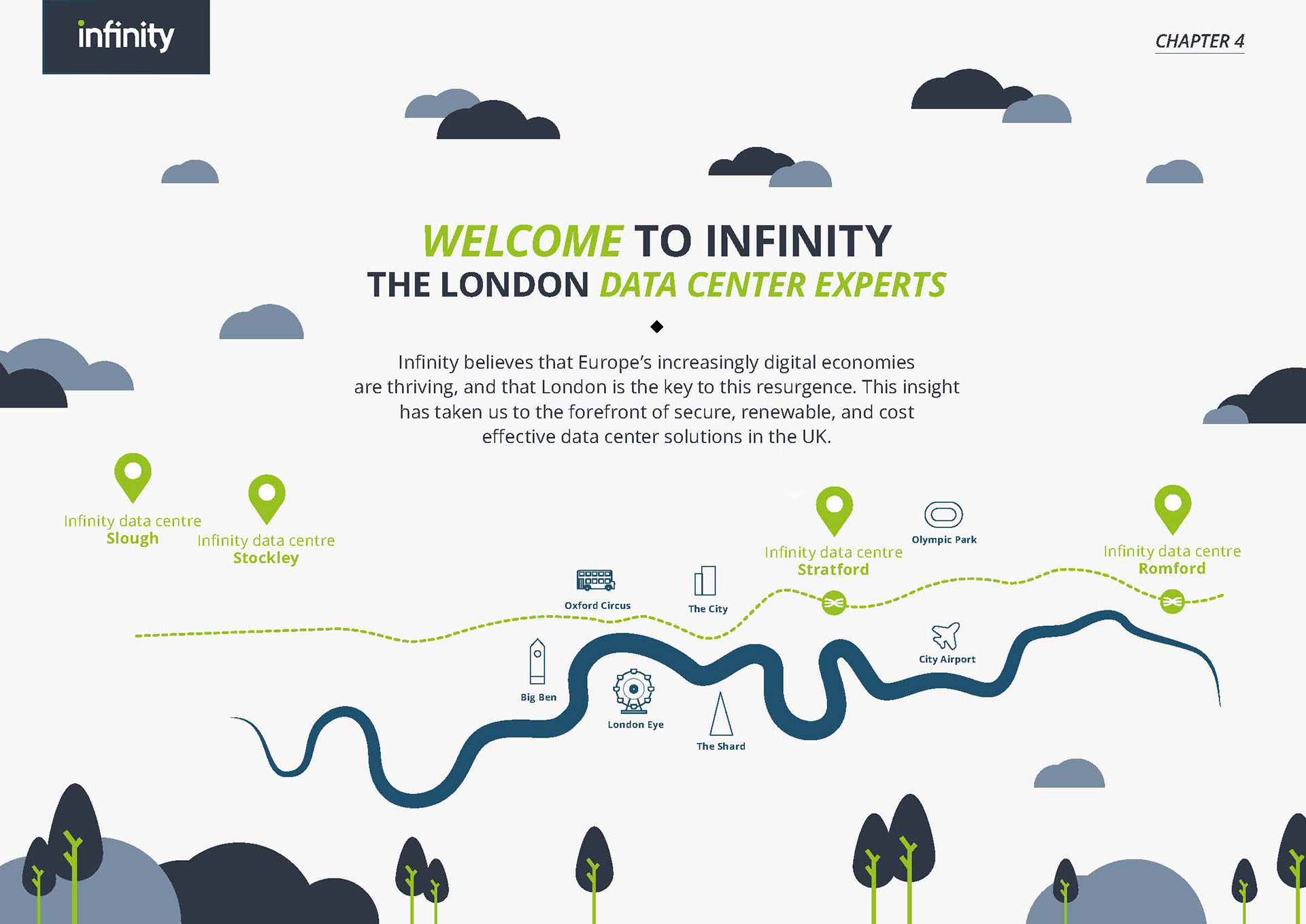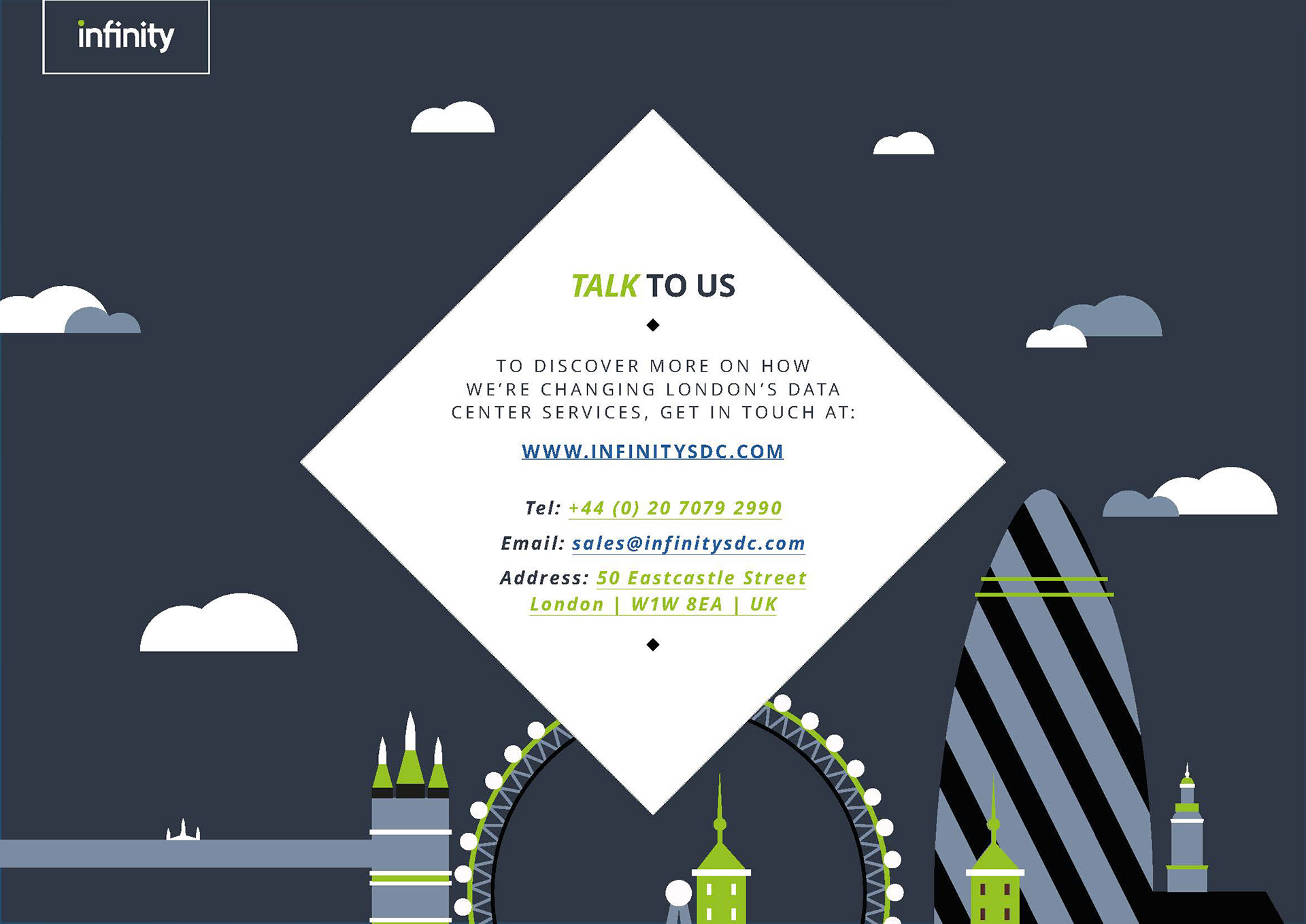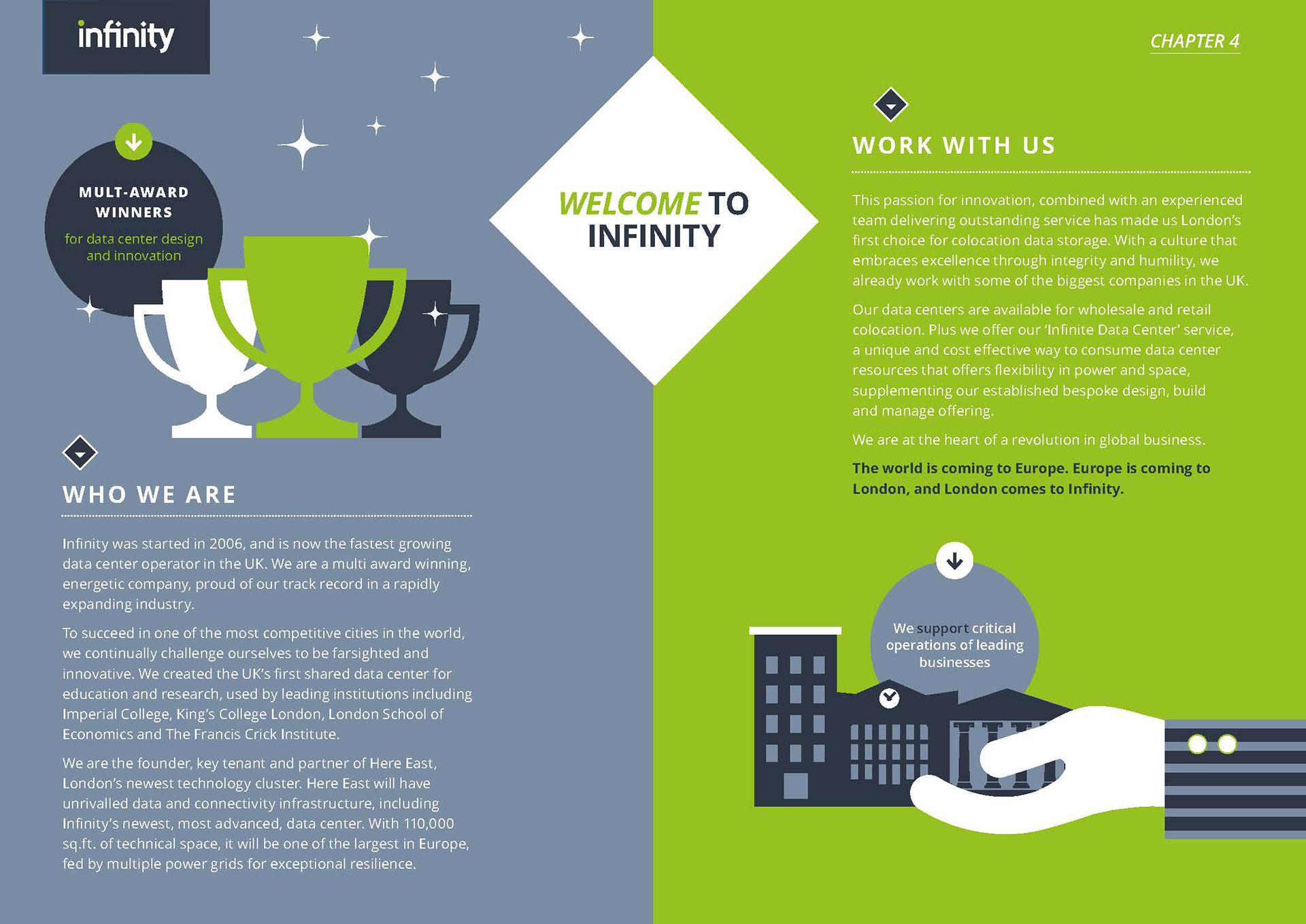 Online sales brochure design and illustration for Infinity Data Centres